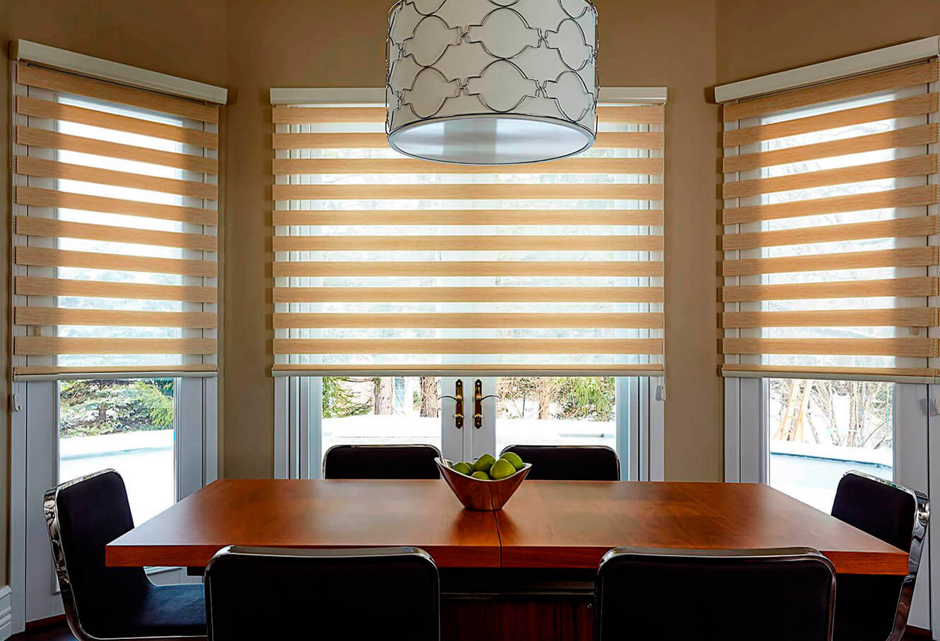 Las Cortinas Roller Eclipse están diseñadas con bandas horizontales que, al superponerlas, logran un ingreso de luz adaptable a la necesidad de cada momento.
